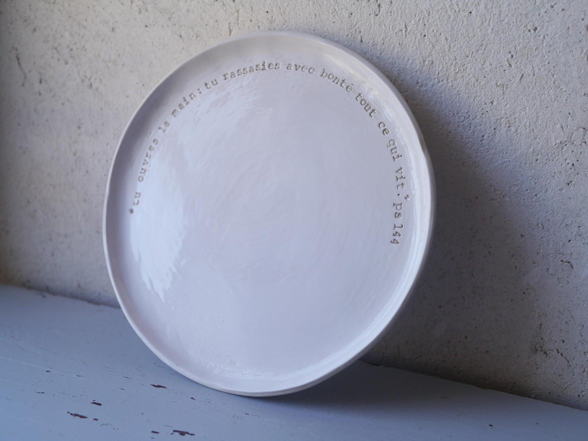 Much more than just an everyday object: a plate stamped with Psalm 144, which invites us day after day to refocus our attention, so solicited in today's world, towards the divine. To be used for our everyday desserts or for our festive table; this plate invites us to place ourselves in the presence of the Lord and accompanies us each day to cultivate gratitude, wonder and trust.
