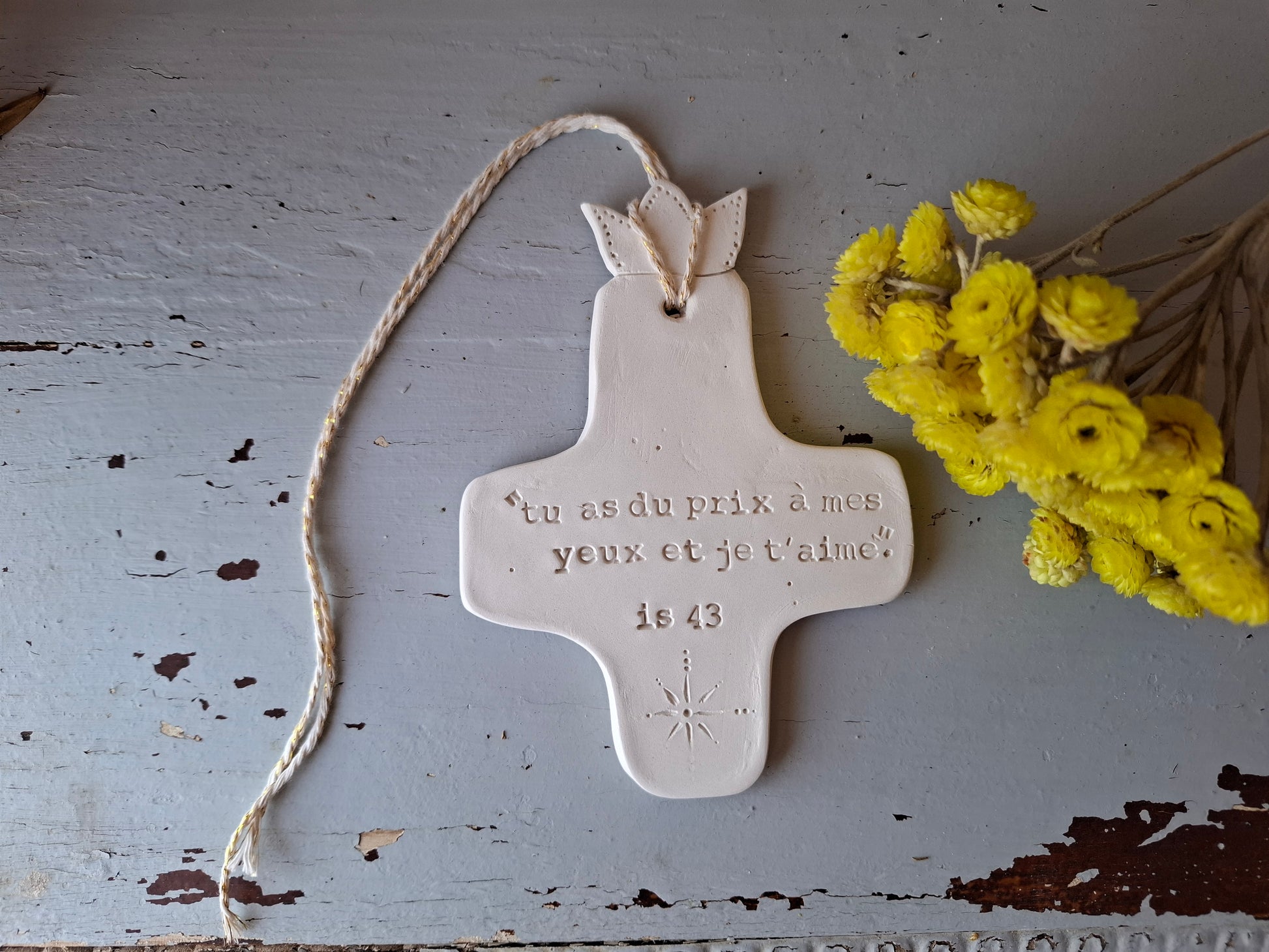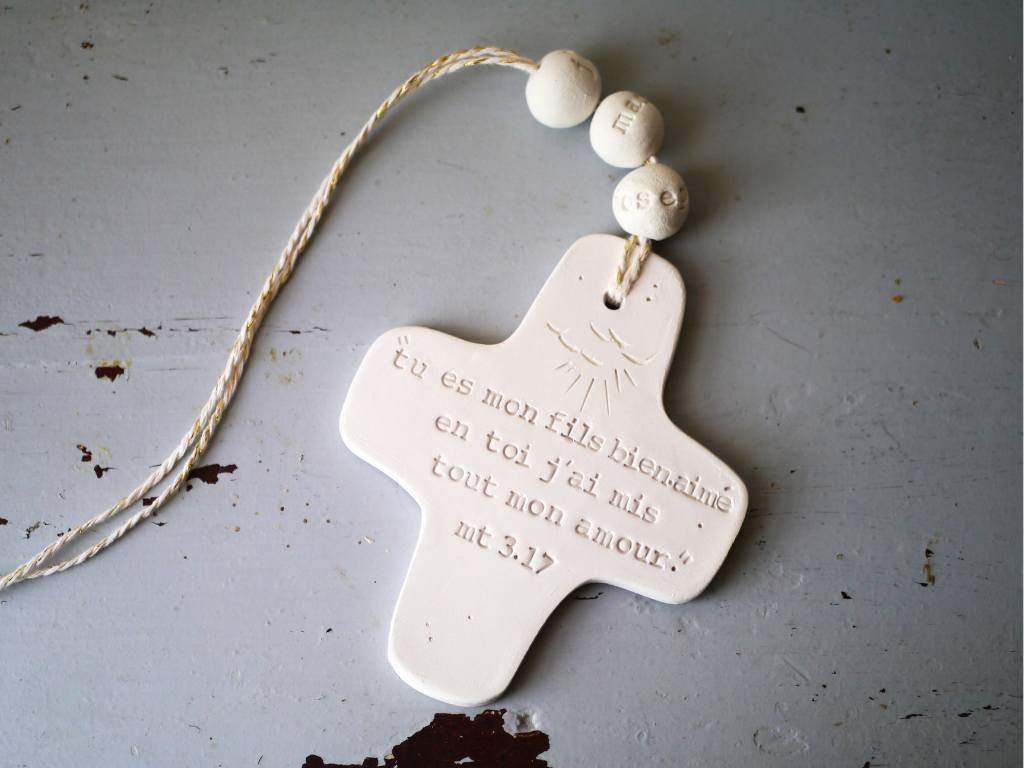 - une croix gravée d'une prière (psaume, évangile...), à suspendre dans son coin prière
