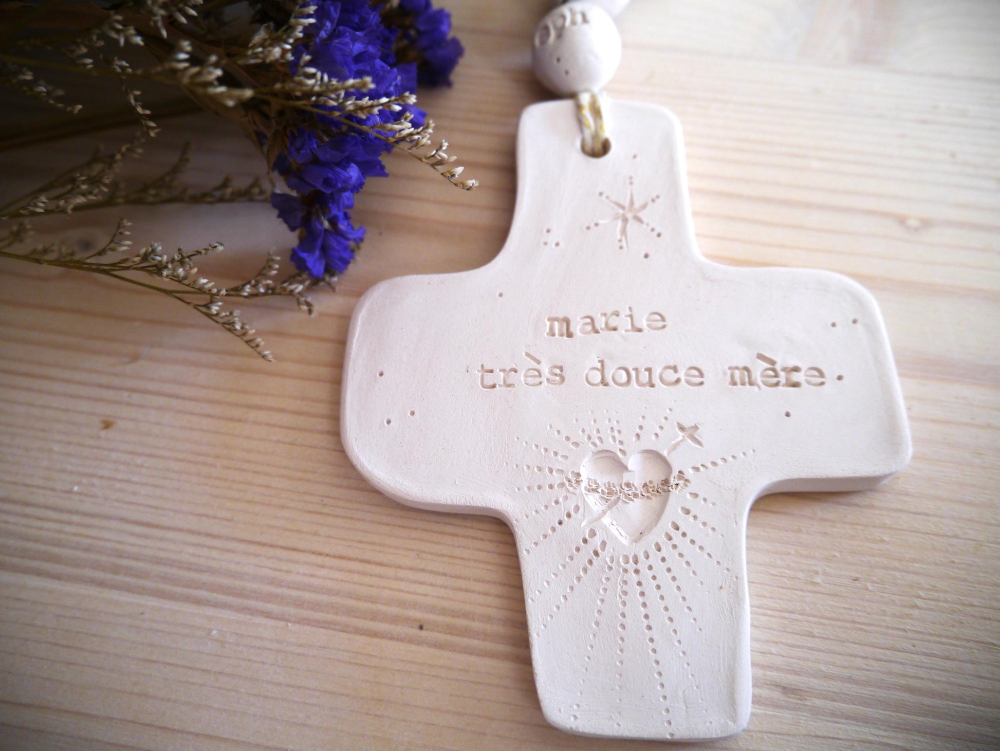 Handmade ceramic cross; to hang in your prayer corner or to offer for a baptism (godchild), a first communion, a profession of faith, a confirmation, a wedding, or simply to a believing loved one.