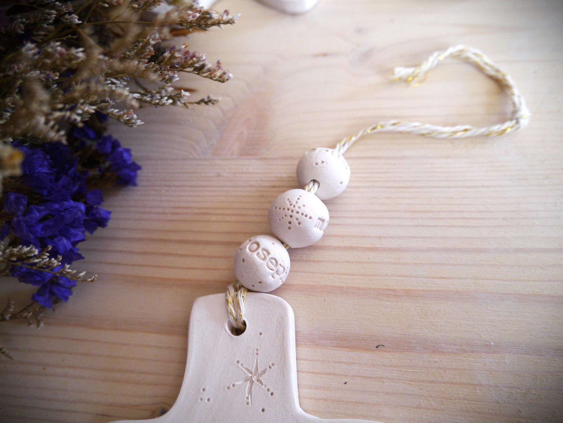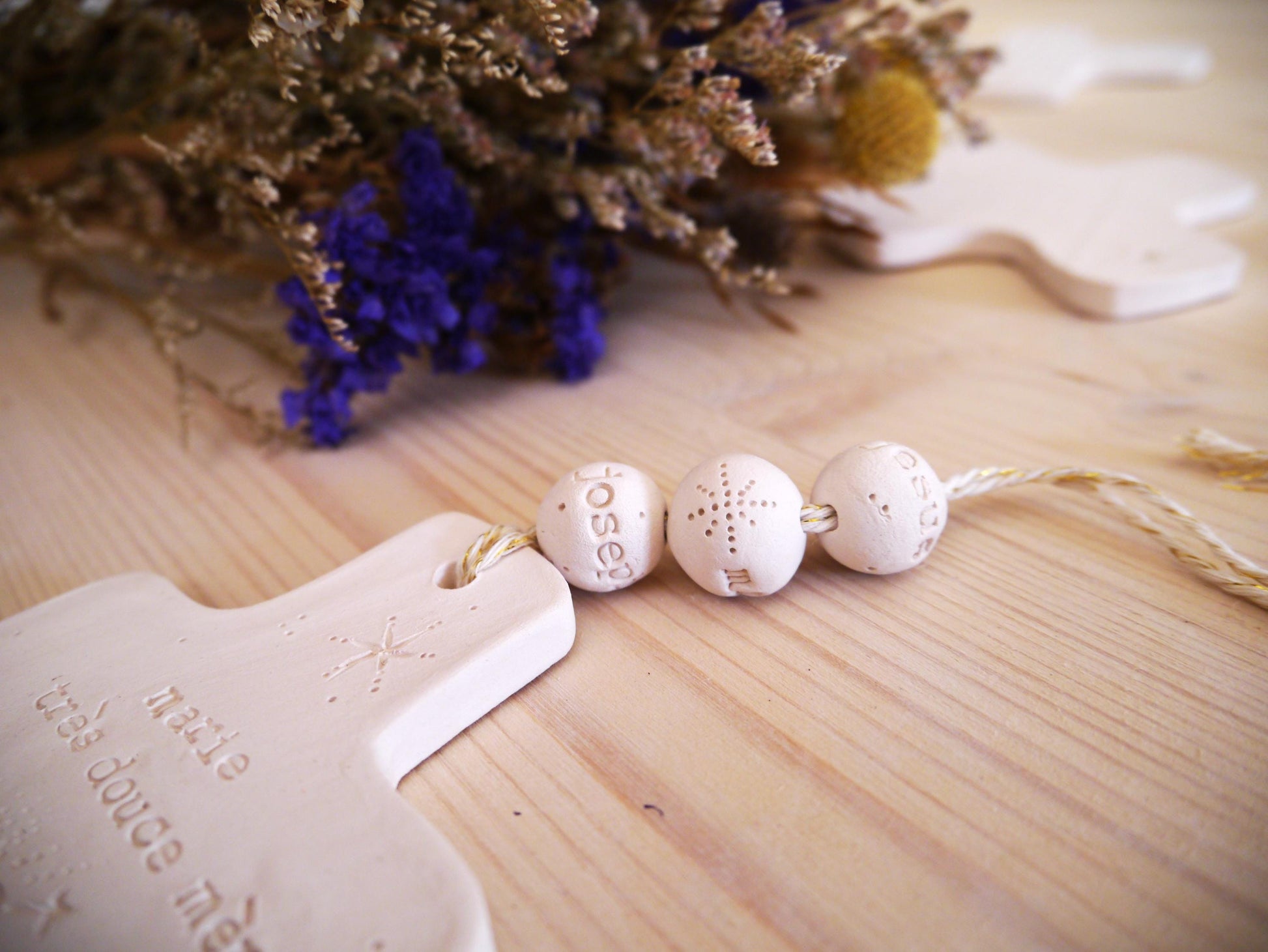 Each piece is unique, handmade and engraved with great care, in the inspiration of the moment. Made of raw stoneware (white earth) fired at 1280 degrees, they are delivered in their small, simple and precious box at the same time, they are the ideal gift to offer for a special occasion, or to accompany us in turning our hearts towards Heaven at any time and in any place.