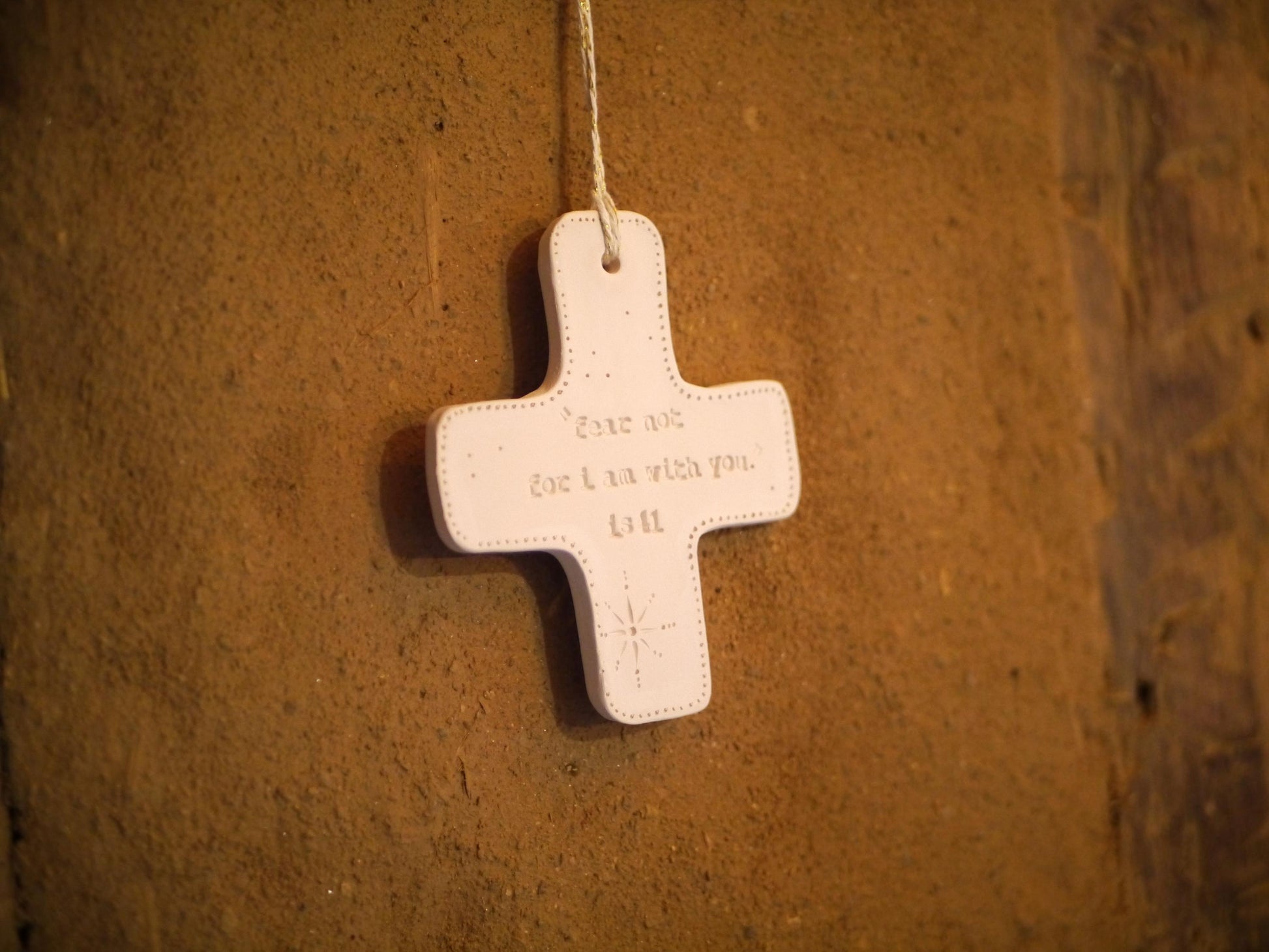 Ceramic cross, unique handmade piece; to hang in your prayer corner or to offer for a baptism (godchild), a first communion, a profession of faith, a confirmation, a wedding, or simply to a believing loved one.
