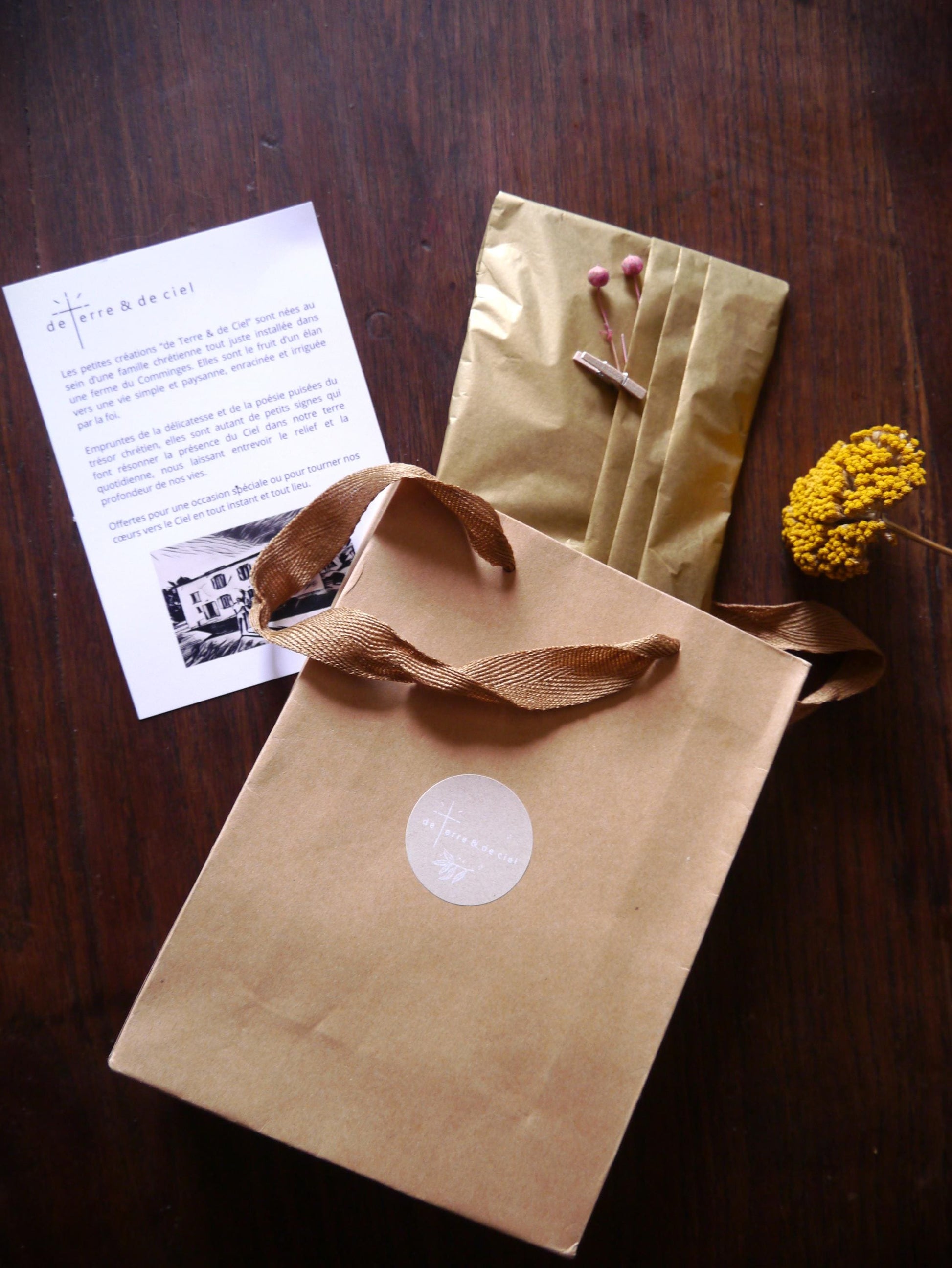 "De Terre & de Ciel" is a small artisanal brand born within a Christian family recently settled on a farm in the Pyrenean foothills. It is the result of a desire for a simple, rural life, rooted and nourished by faith. The small creations of "De Terre et de Ciel" invite us to move from the visible to the invisible, from everyday objects to Presence.