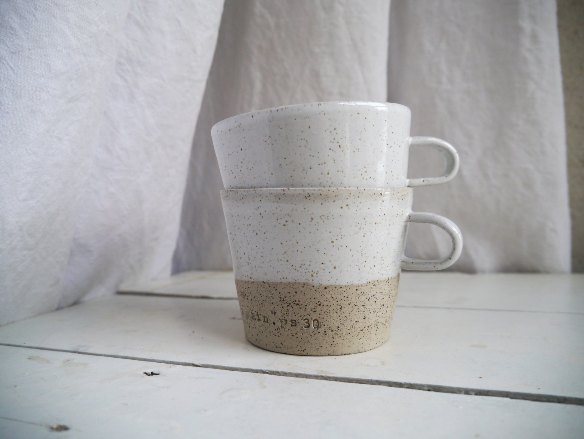 CUPS FACE TO FACE - Morning Prayer, Psalm 62. Mug 1 with the inscription "God, you are my God, I seek you from dawn." Mug 2 with the inscription "my soul thirsts for you". For the English version: cup 1: "o god, you are my god; earnestly i seek you". Cup 2: "my soul thirsts for you". Prayer Cups: Much more than just an everyday object! A cup held in the palm of our hands invites us day after day to refocus our attention, so solicited in today's world, toward the divine. To be incorporated into a morning ritual, this cup and the message it reveals, opens our day to the sacred, places us in the presence of the Lord, and accompanies us each day to cultivate joy, gratitude, and trust. For a prayer together... A HANDMADE piece Each piece is entirely handmade by Mathilde in the South West of France. In ceramic (earthenware), fired twice at over 1000°. Cream-colored enamel with orange and black glitter on the outside and plain cream on the inside, food-grade. Dimensions: approximately 8cm x 8cm Each piece being handmade, they bear irregularities which are the very essence of handmade objects, unique, and the sign of their authenticity. DEADLINE Pre-order; made to order and available in 6 to 8 weeks. ABOUT “Of Earth & Sky” "De Terre & de Ciel" is an artisanal brand born within a Christian family in the Southwest of France. By making your daily life a prayer, De Terre et de Ciel invites you on a true spiritual path to live in the presence of God at every moment. Through a sacred craft imbued with beauty, gentleness and simplicity, giving pride of place to the word of God, and designed to fit into the daily realities of Christians today, each of your actions can become a bridge to God. FOLLOW US ON: fb, instagram, pinterest