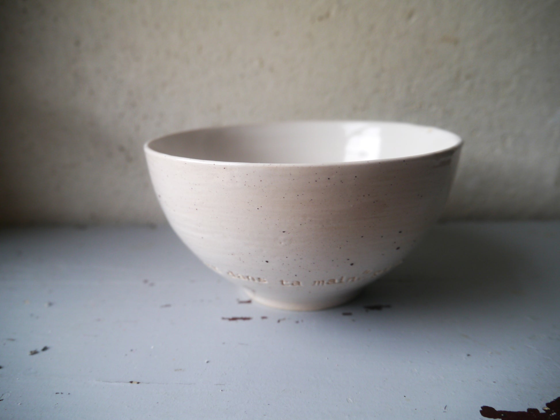 - une tasse (format à choisir) ou un bol, gravé du psaume 30 "mes jours sont dans tes mains"
