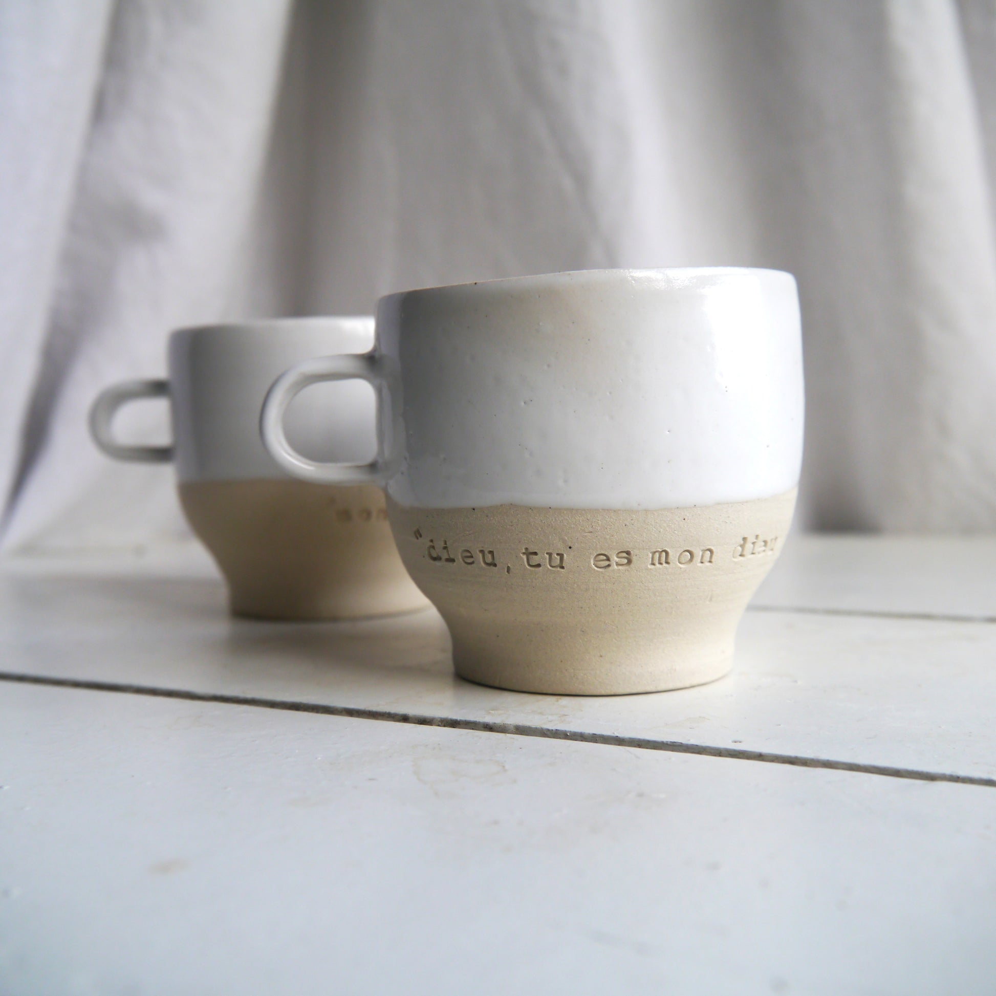 "La tasse a beaucoup plu aux deux personnes à qui je l'ai offerte, pour sa beauté, sa pureté et le verset de psaume! "Claire, 2026